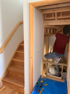 階段下の壁を抜いて裏側から修理してもらいます。