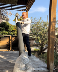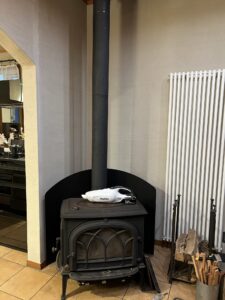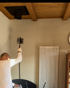 寒くなる季節に備え、宇治尖山ショールームにある薪ストーブの煙突掃除を行いました。