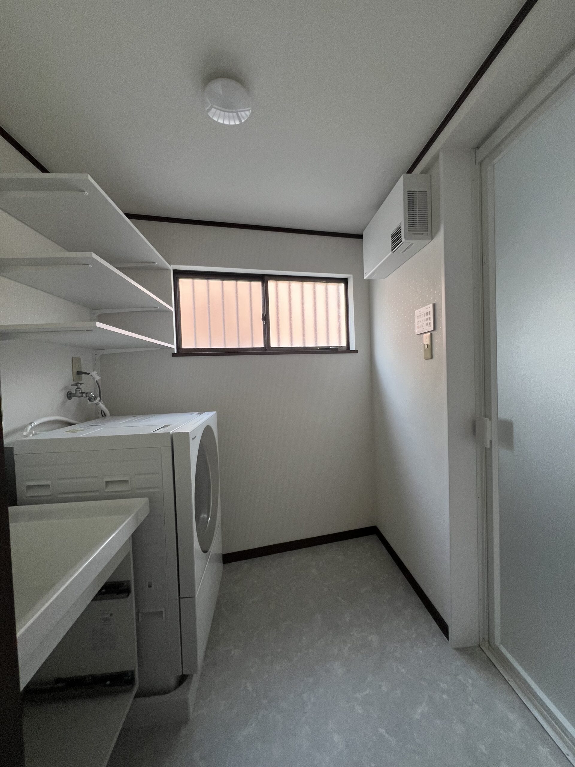 洗面所に暖房を追加し、洗濯機の上には可動棚をうまく納め、快適性と使い勝手もアップデートされました。