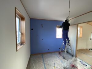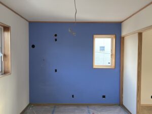 本日は建築中のお家から、カラーのしっくい塗りのご紹介です。