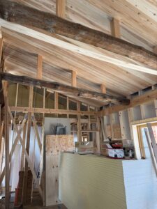 上棟の様子でもご紹介しましたが、以前お住まいだった古い家の立派な梁や柱を新しい家でも加工しなおして