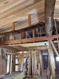 リビング・ダイニングになる予定の空間に立派な梁がかけられています。