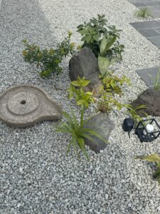 建て替え前の古い家に使われずに残されていた石を再利用して、