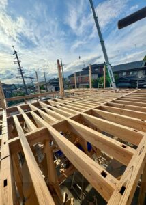 スタッフ西岡です。先日より弊社の新事務所の上棟が始まりました。