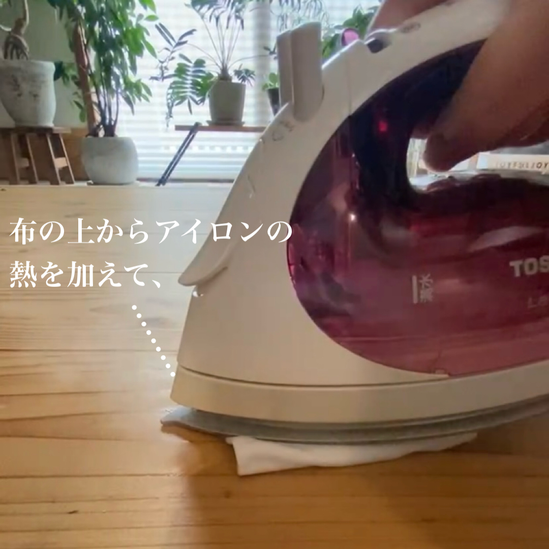 用意するものは、アイロンと布(今回はいらなくなったTシャツの切れ端を使いました)