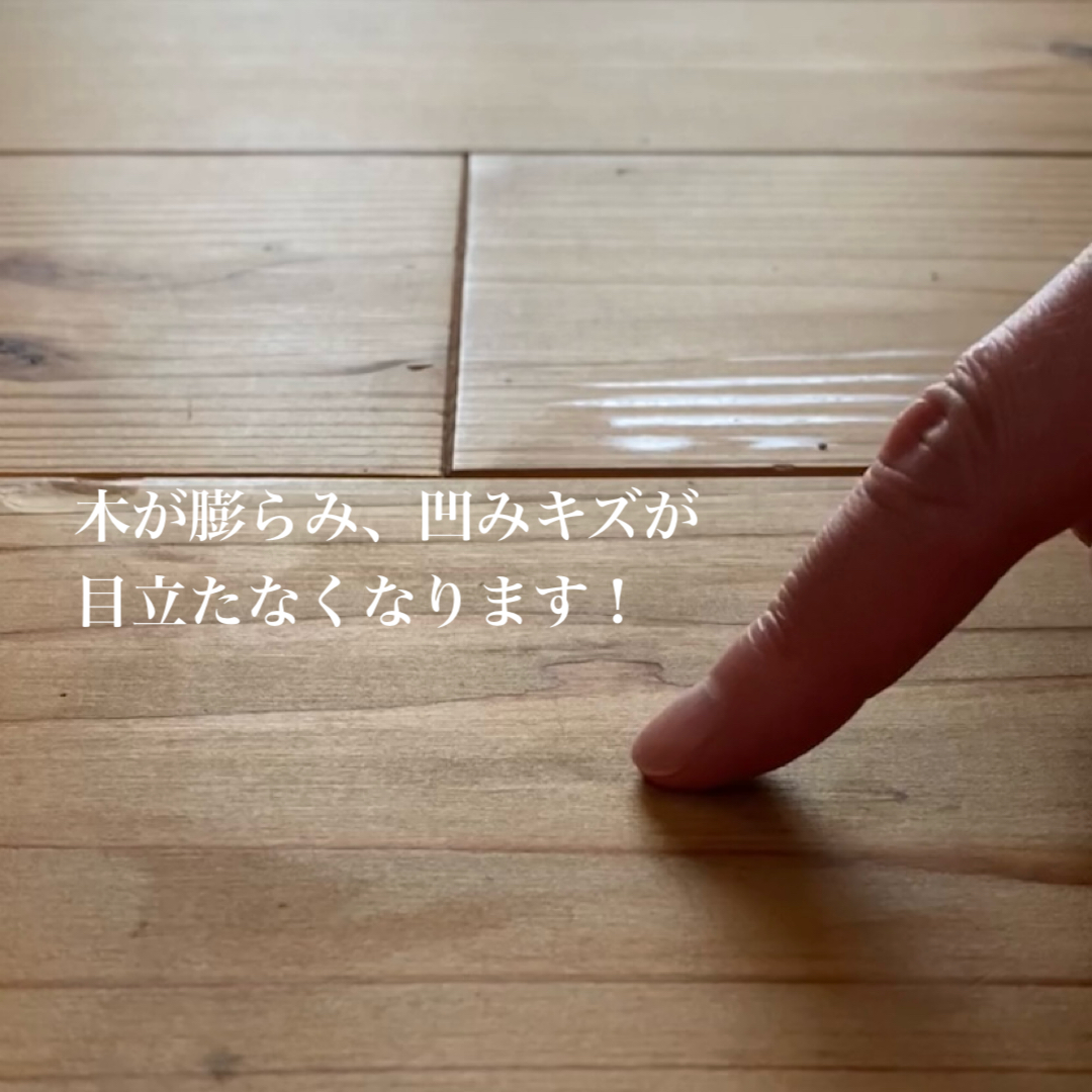 今回メンテナンスしたのは杉の無垢のフローリング。柔らかくてあたたかな足ざわりが人気の