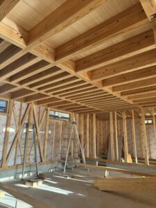 先月上棟した弊社新事務所の工事が着々と進んでいます。