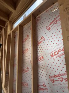 新事務所でもそよかぜの家の住宅で施工している工法と同じ、外張り断熱工法を採用しています。