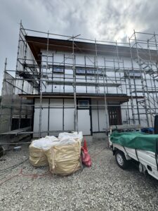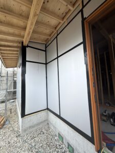 建物の外側から見ると断熱材で建物が覆われているのがわかります。