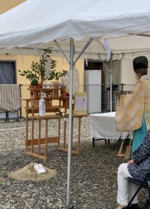 お施主様のご両親も一緒に参加されて、ずっとこの土地を守られてきたご両親から新しい世代へと引き継がれていくということを感じられるお式でした。