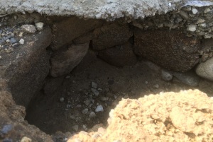 前面道路は年末に下水と給水管の取替工事をして掘り返していたので、そっちに流れていったのかもしれません。建物の下は調査しましたが、良くしまった堅い地盤だったので(実際に掘る時も相当堅かった)問題はないでしょうけど。