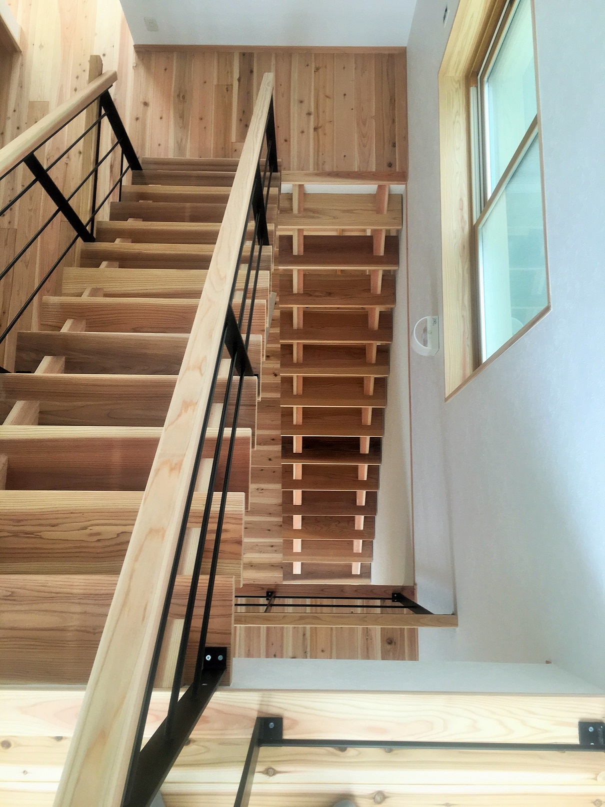 屋上テラスまで3層続く階段が1階のリビングまで光を導きます。