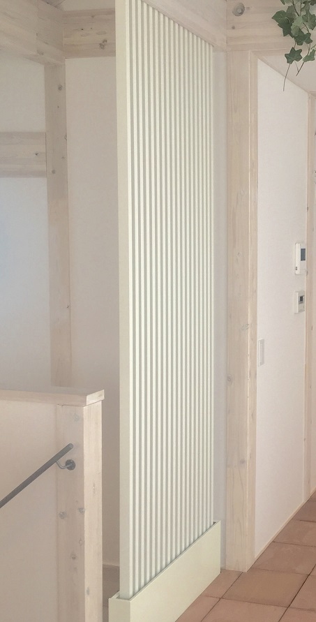輻射(ふくしゃ)冷房という言葉、きかれたことはありますか?写真の白いルーバー状のものがそれです。