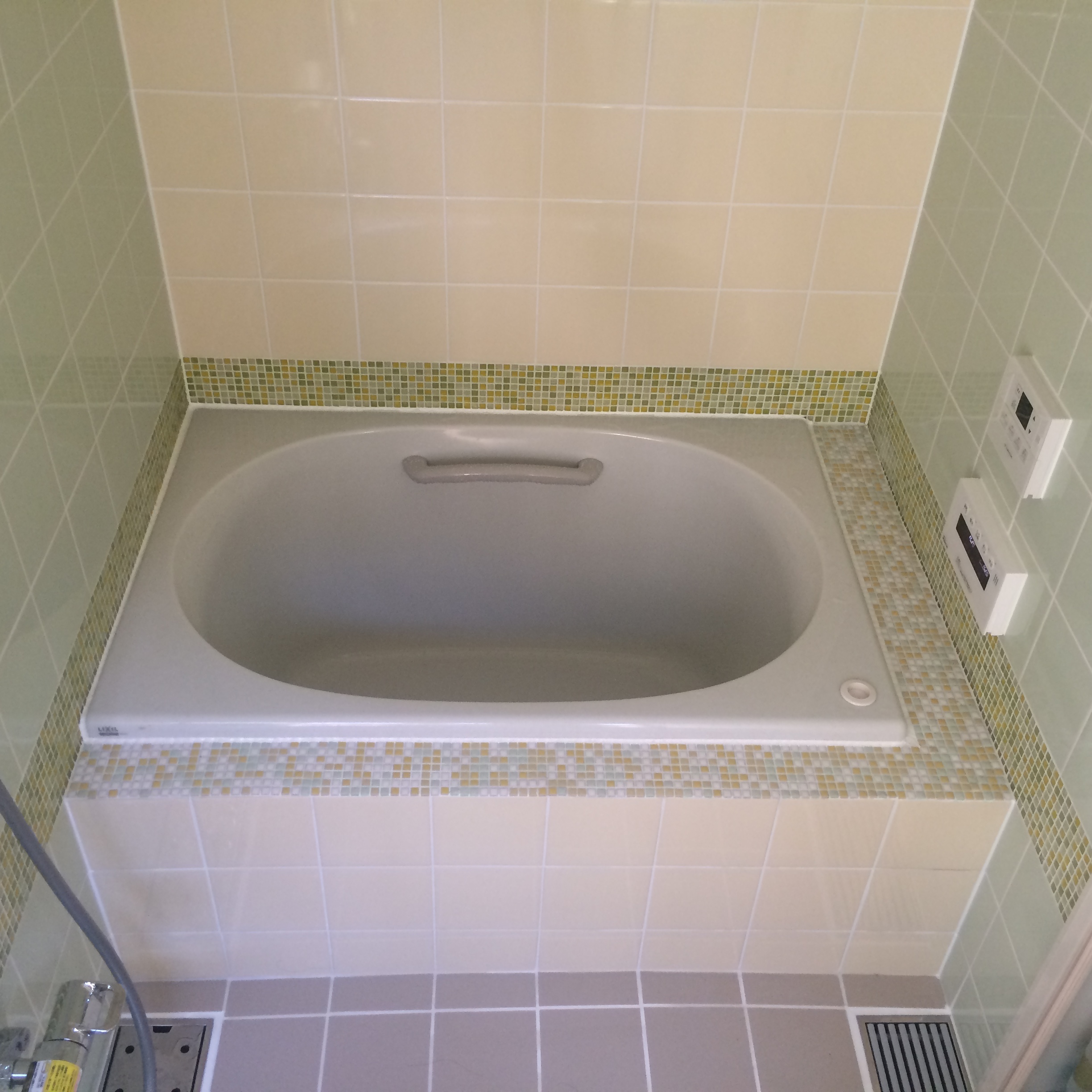 タイルは細かなモザイクをお選びいただき、とてもかわいく仕上がりました。