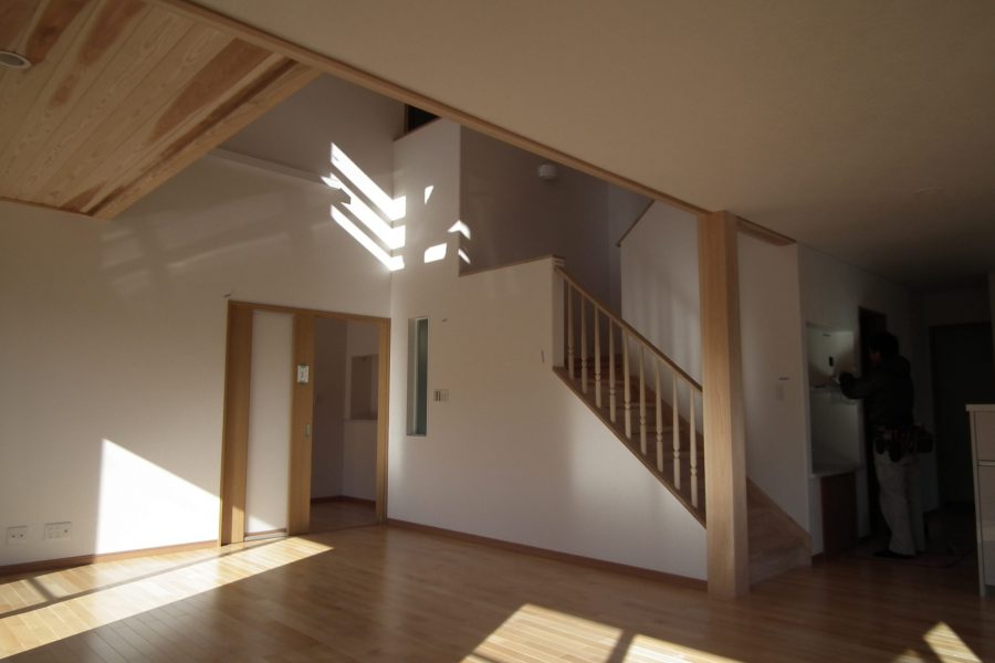 大工さんの自邸 郊外に建つ広々とした家 大工さんの施主が自ら手刻み設計を当社が、施工は施主の親方が 仕事で関わりのある職人さんが、自分の家を建てるときに依頼してくれるのは、とてもうれしいもの。職人さんとの信頼関係の証でもあります。仕事を引き受けるときに、自分で手刻みするようにと条件を出しました。夜遅くまで頑張ってまさに自分の手で建てた家は格別なものでしょう。 延べ床面積:183.83㎡(55.6坪) PDF資料はこちら 一覧に戻る