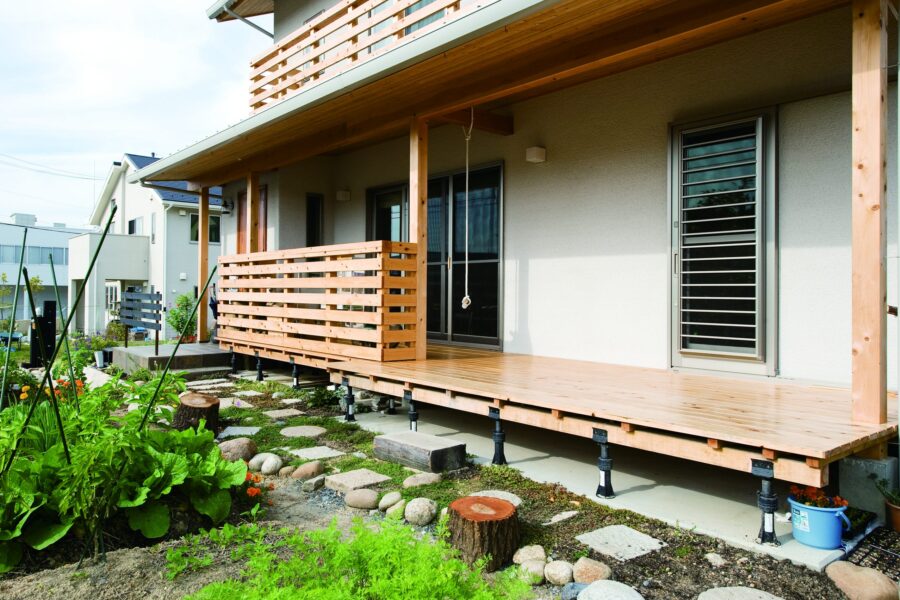縁側のようなウッドデッキは家族三世代がくつろげるとっておきのスペース。