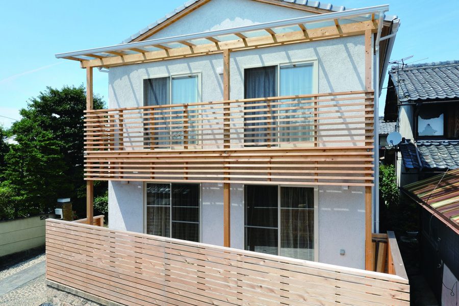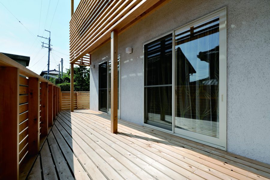 南面は路地に面していますが、敷地が一段高いので、視線をかわすこともでき、広々としたアウトドアリビングにもなるウッドデッキを設けています。