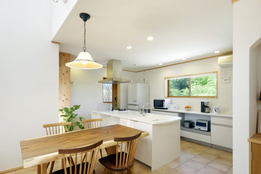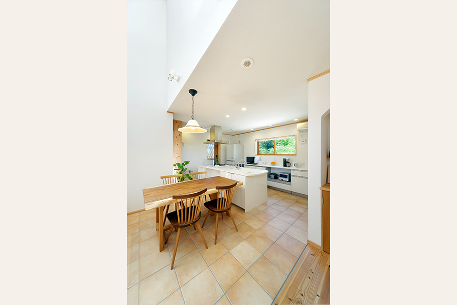 床には杉材を使い、ダイニングキッチンにはテラコッタタイルを合わせ、ご夫婦が新婚旅行で訪れたという南欧をイメージした空間にまとめました。