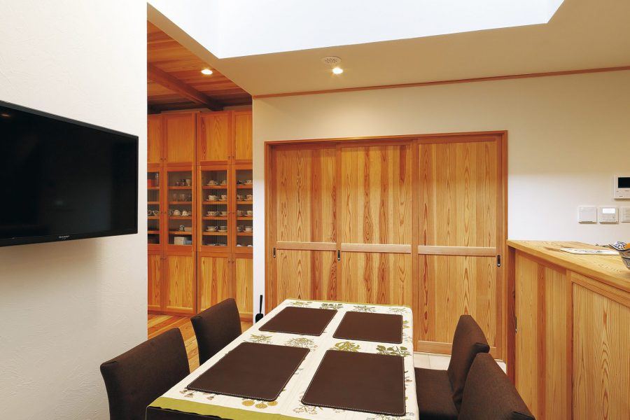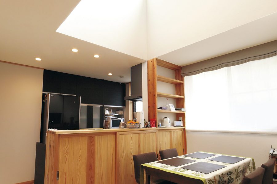 そよかぜの家の性能を生かし、開放的な間取りにすることで、あかりが内部まで行き届きます。