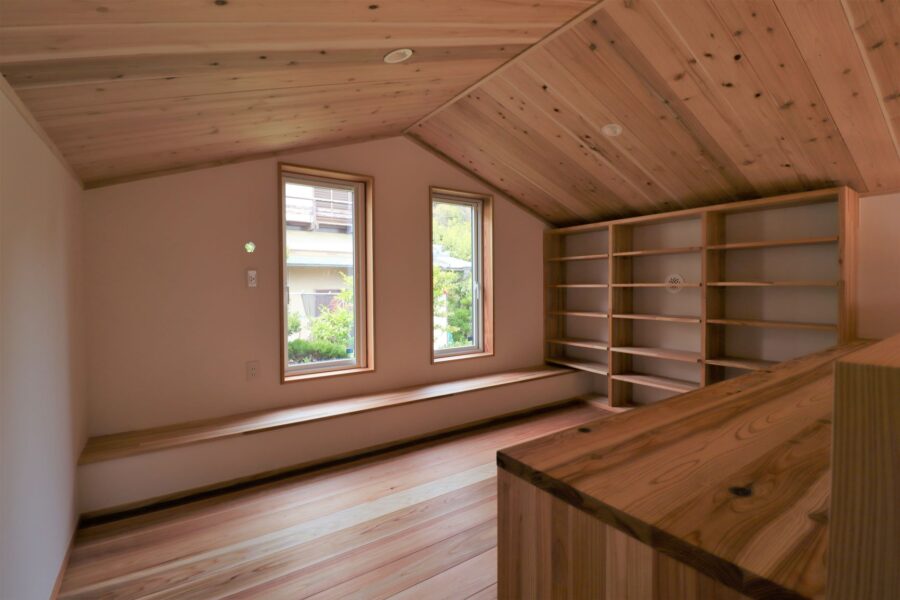 小屋裏を表し、ハイサイドライトからの採光により、隅々まで明るさを確保しました。