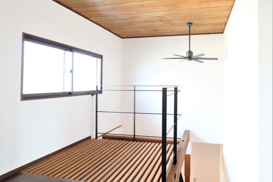 天井部分の一部を格子状にすることで開放感のある空間に。
