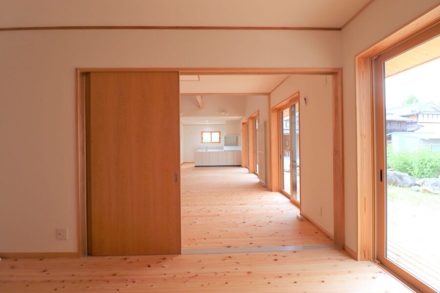 ほとんどの扉を引き戸にしたバリアフリー仕様の住まいになっています。