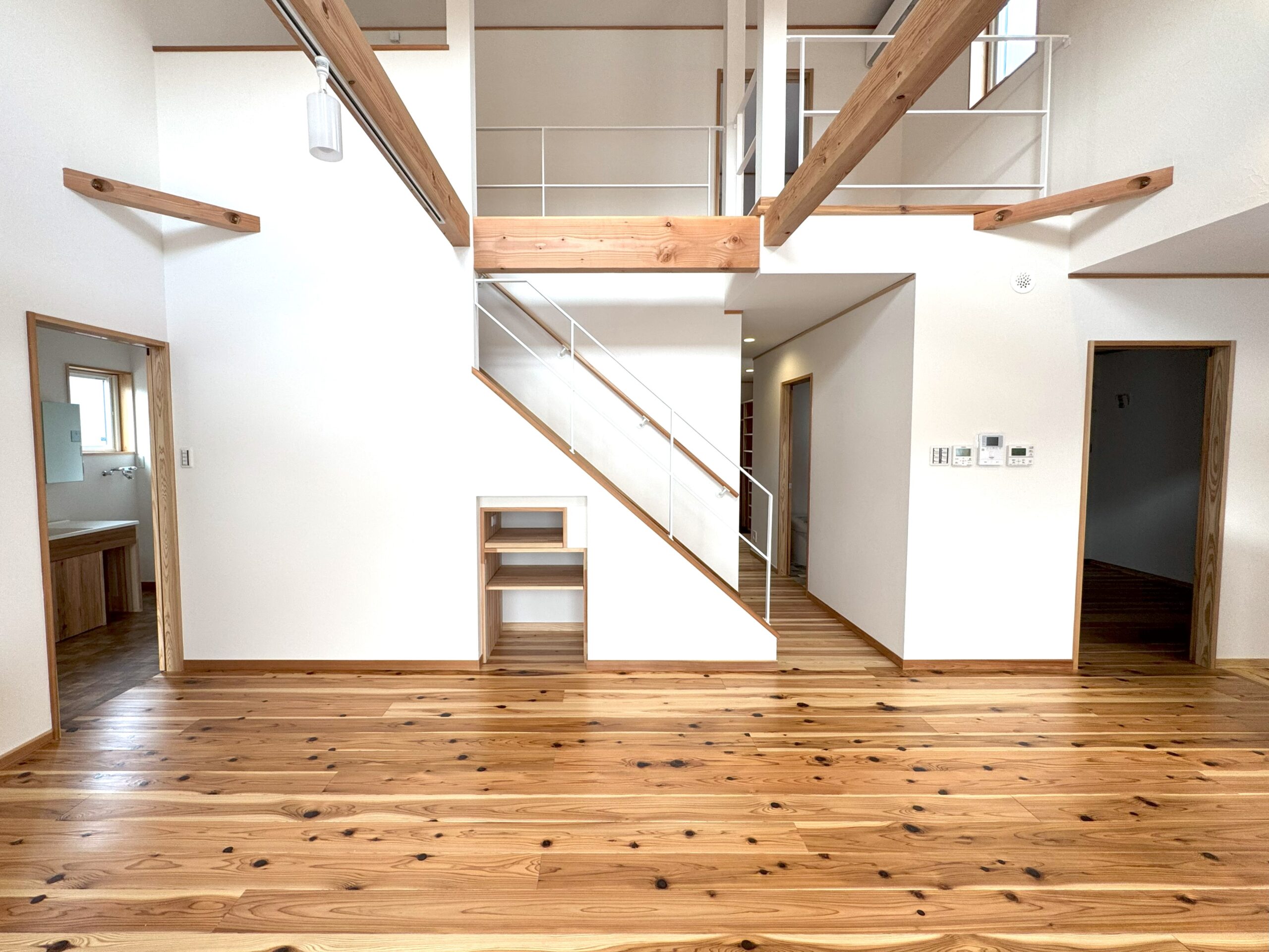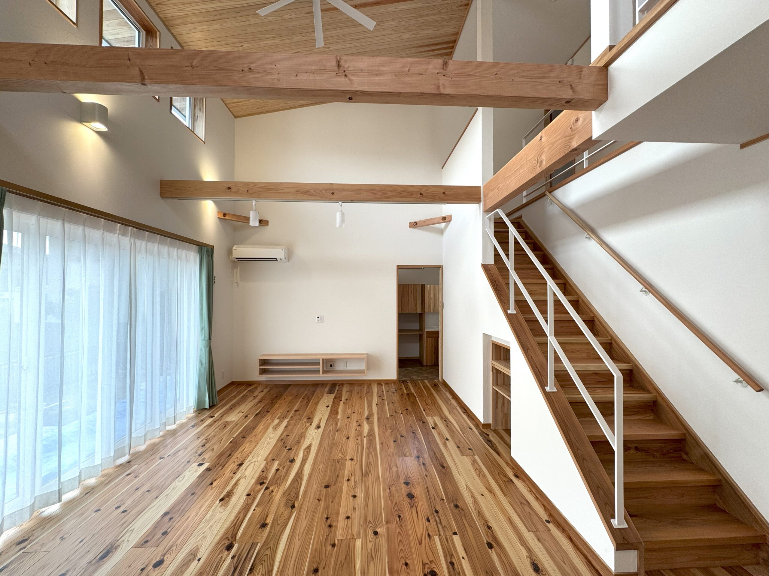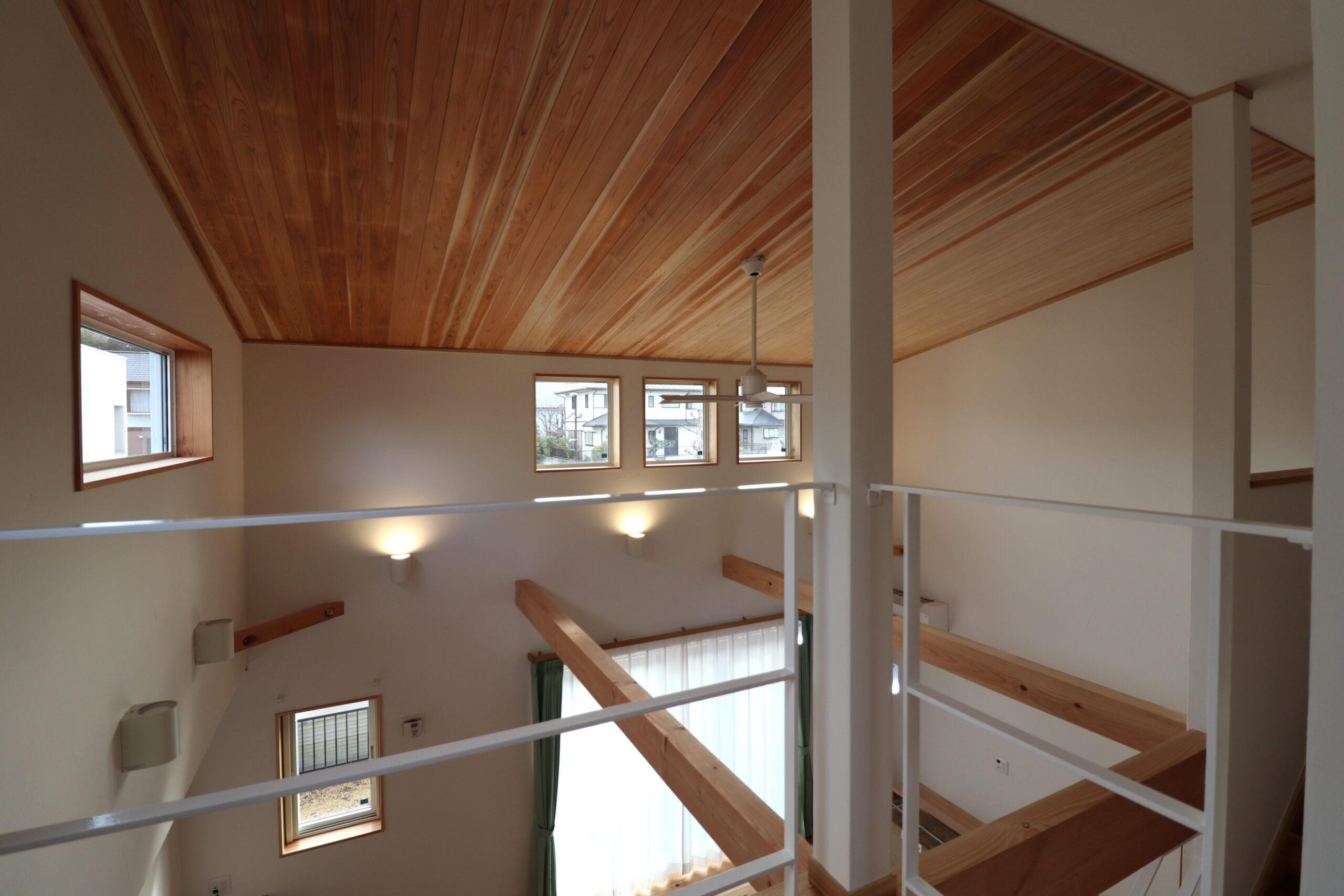 リビングダイニング部分を大きく吹き抜けにすることで、明るい光が差し込む心地よい住まいになりました。
