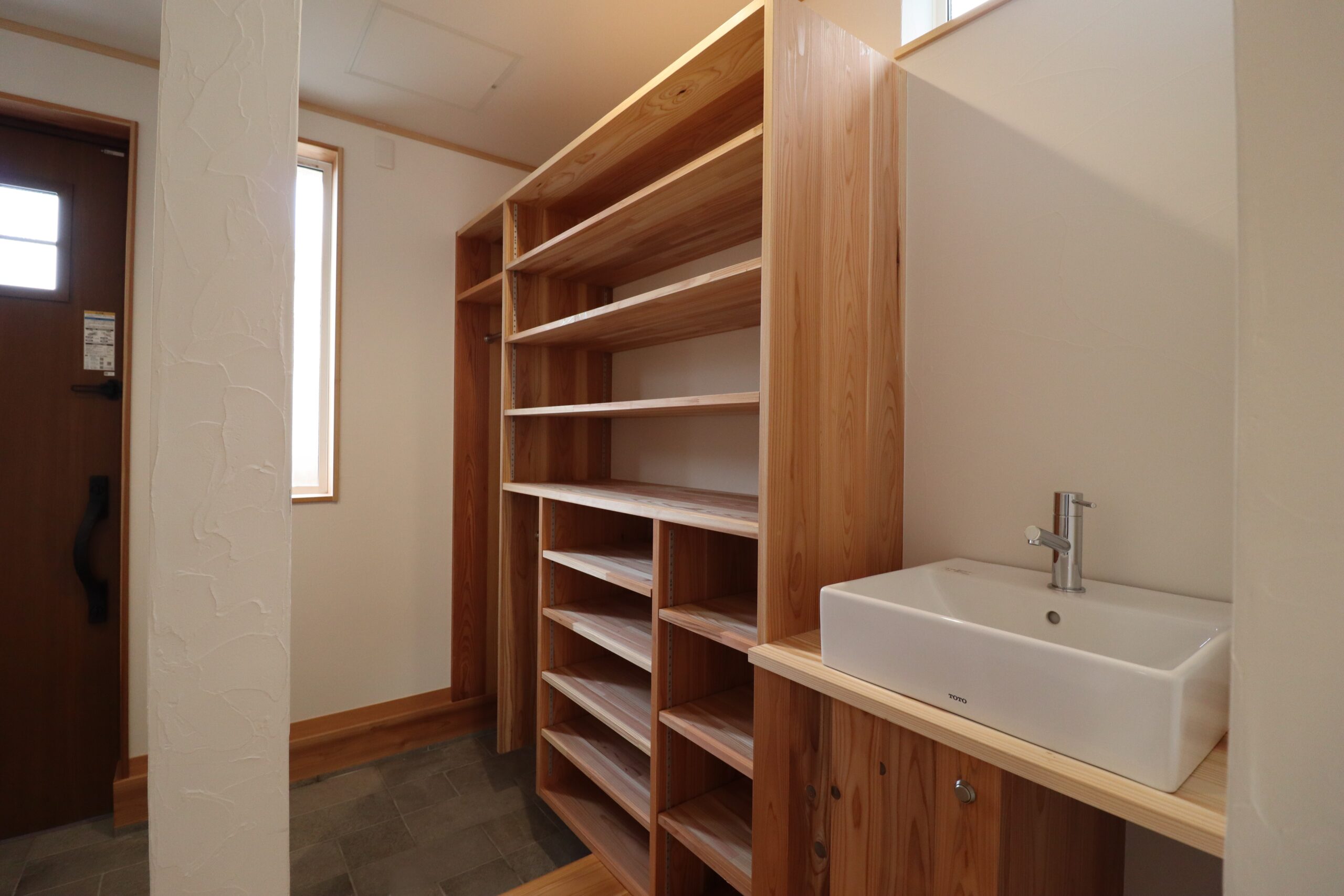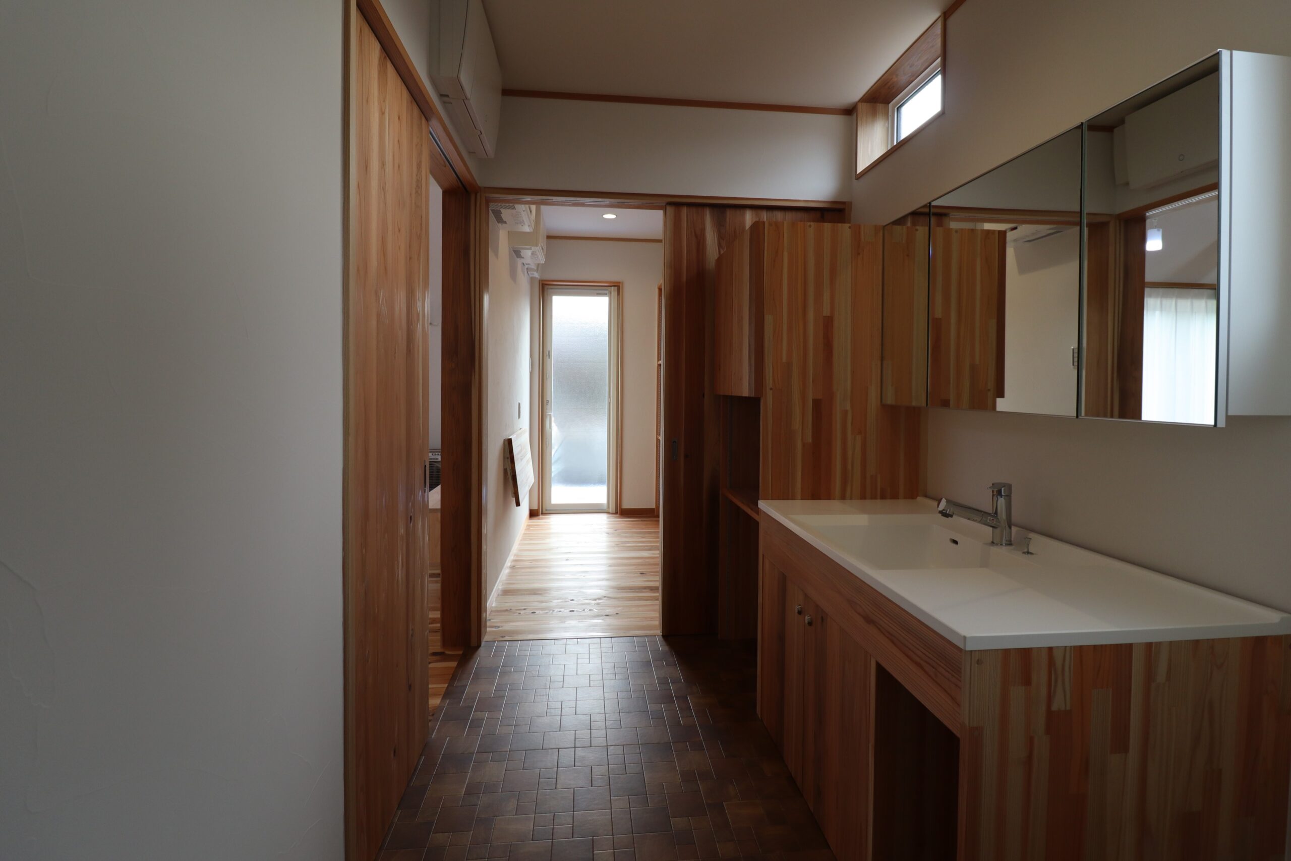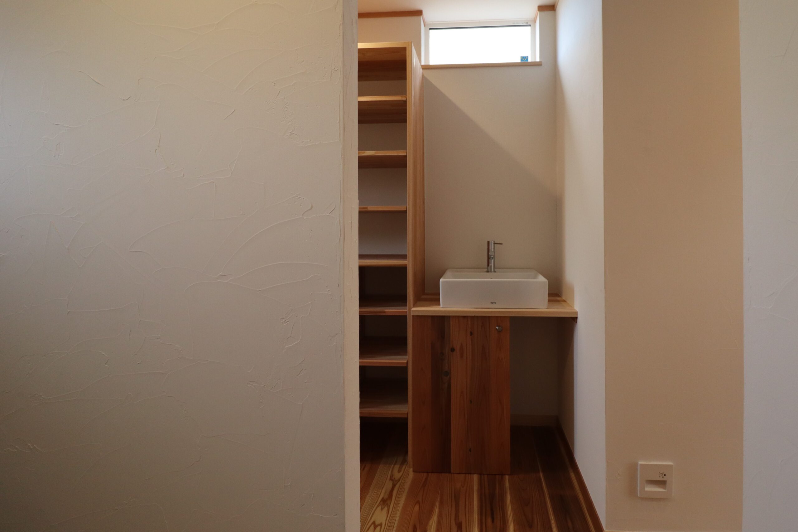 こだわりポイント ほぼ平屋の間取り 高性能の断熱・耐震住宅 造作洗面や収納