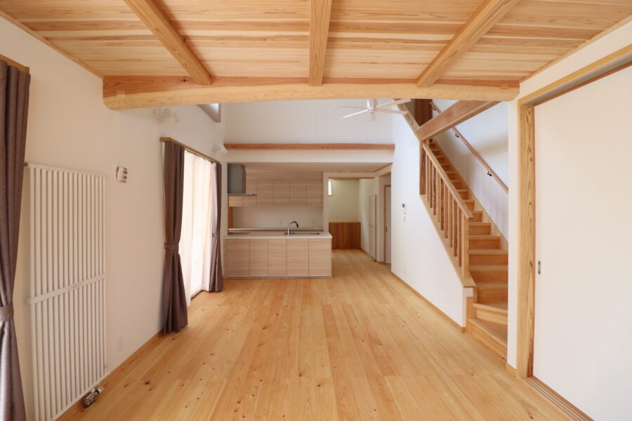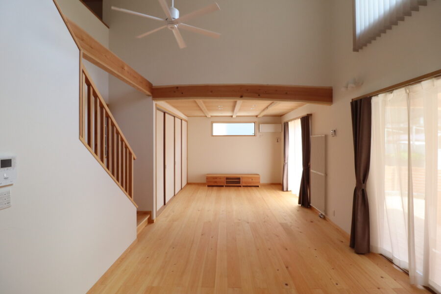 「高気密高断熱、24時間計画換気による健康住宅の快適さを住んでみて実感しています。無垢の床や梁の木の良さなど、とても落ち着きます。」とお施主様。