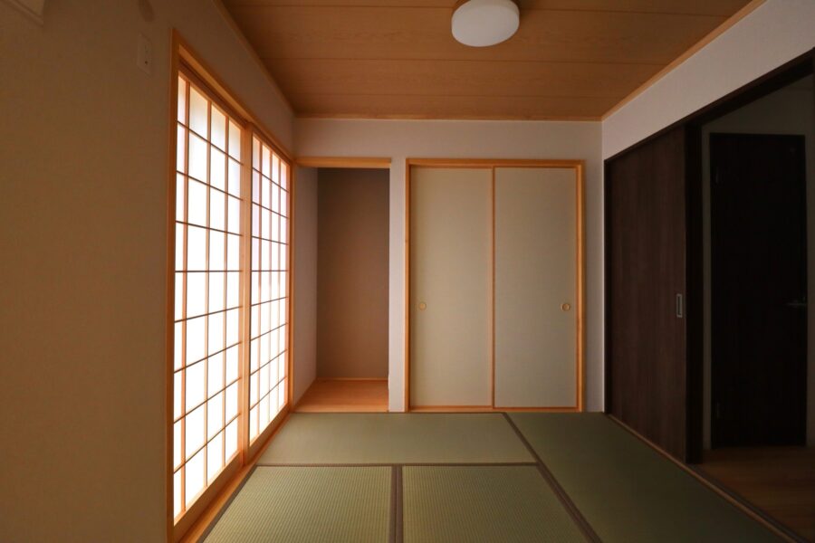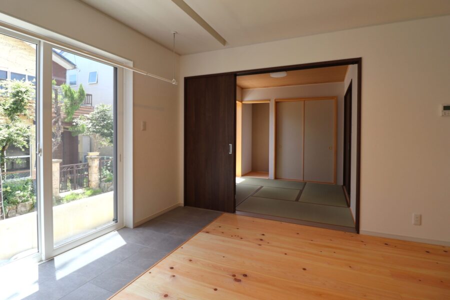 ささやかな床の間のある和室はリビングに面しており、お子さんのお昼寝や来客の寝室としても活用できます。