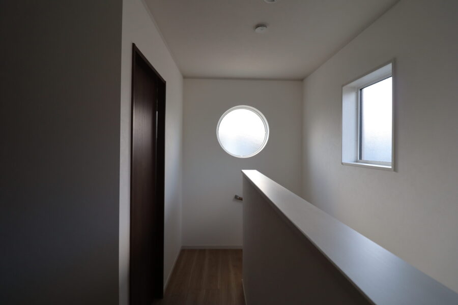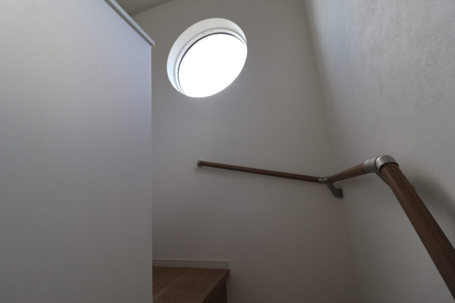 丸窓から差し込む光が、家族を毎日をやさしく照らしてくれる住まいです。