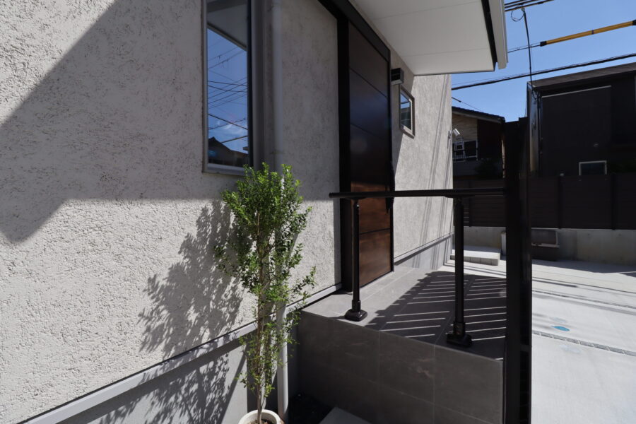 家の外壁にはメンテナンス回数を少なくおさえられるシラスそとん壁を採用しました。