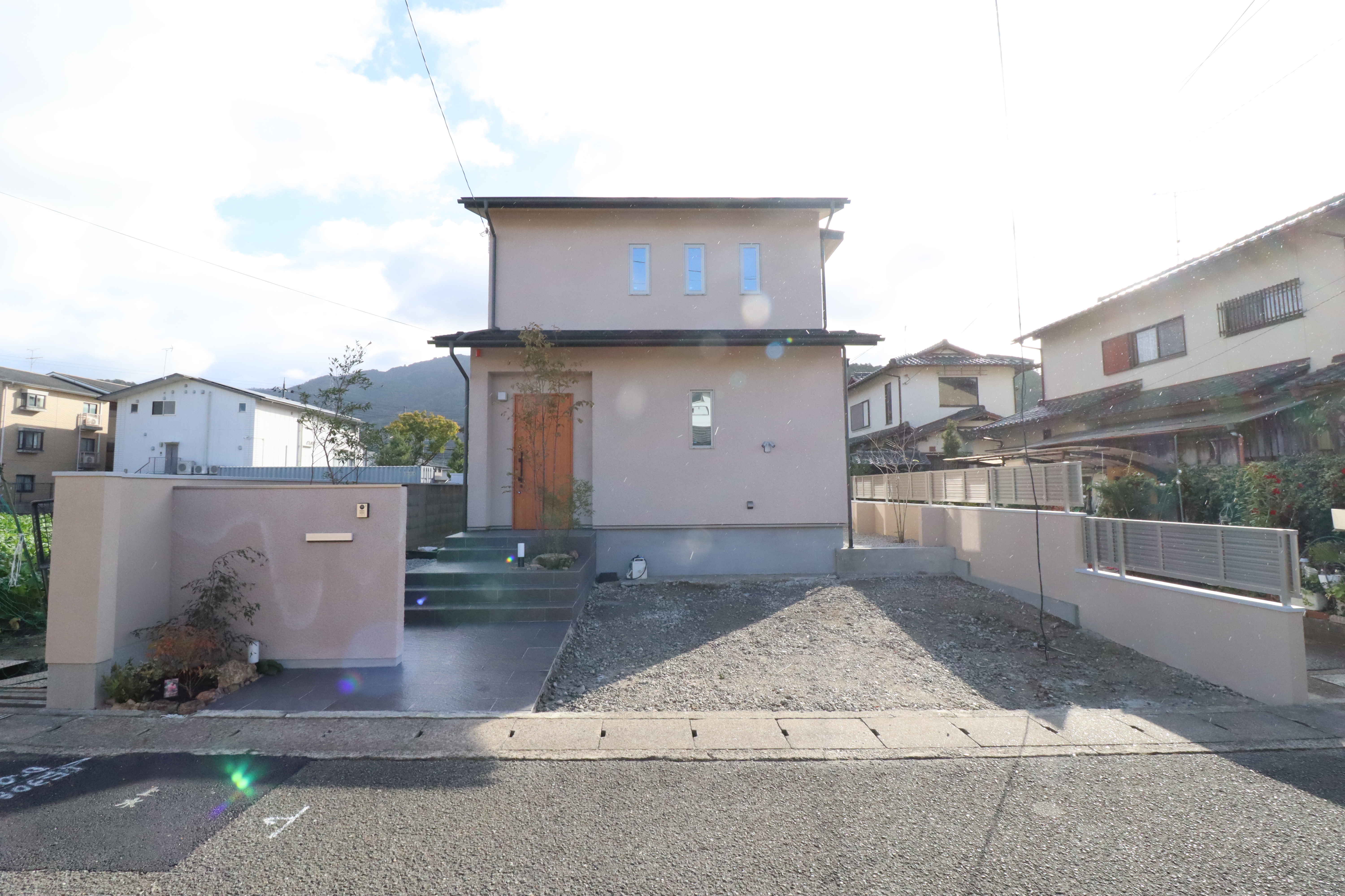 外壁はシラスそとん壁で仕上げ、京都の風致地区の景観にもしっくりと馴染む落ち着いた佇まいの外観です。